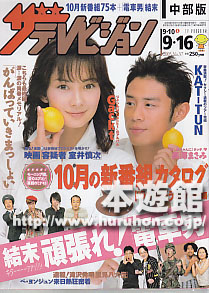 ザ・テレビジョン中部版2005年09月17日-09月23日号KAT-TUN(表紙/4P)、菅野美穂、山下智久、伊東美咲、菊川怜、観月ありさ、SMAP、ペ・ヨンジュン、中越典子、亀梨和也、沢尻エリカ、田中美佐子、谷原章介、倖田夾未、仲間由紀恵