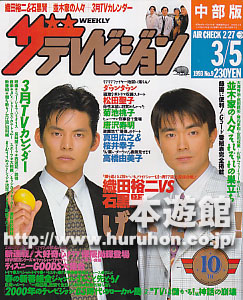 ザ・テレビジョン中部版1993年02月27日-03月05日号織田裕二&石黒賢(表紙)、保阪尚輝、吉川晃司、武田鉄矢、陣内孝則、モノクロ(桜井幸子、真田広之、黒木瞳、三宅裕司、唐沢寿明、安達祐実、ダウンタウン、鶴田真由、松田聖子、菊池桃子、高