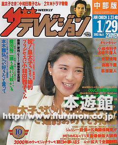 ザ・テレビジョン中部版1993年01月23日-01月29日号小和田雅子(表紙)、織田裕二、石黒賢、本木雅弘、松雪泰子、森高千里、モノクロ(赤井英和、松本人志、鈴木保奈美、筒井道隆、高橋由美子、森脇健児、南原清隆、小泉今日子、長山洋子、萩原聖