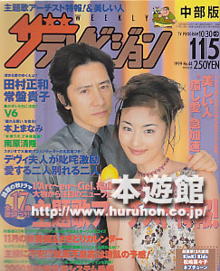 ザ・テレビジョン中部版1999年10月30日-11月05日号田村正和&常盤貴子(表紙/6P)、V6、本上まなみ、松嶋菜々子、堂本光一、進藤晶子、小倉弘子、モノクロ(南原清隆、堀内健、反町隆史、上里亮太、安達祐実、Rマニア、PUFFY)