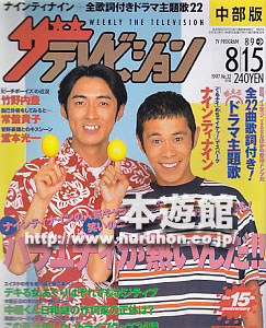 ザ・テレビジョン中部版1997年08月09日-08月15日号ナインティナイン(表紙)、竹野内豊、常盤貴子、武田真治、モノクロ(菅野美穂、堂本光一、中居正広、伊東四郎、明石家さんま、大竹しのぶ、大河内奈々子、上原さくら、深津絵里)