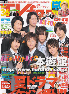 テレビファン2011年09月号KIS-MY-FT2(表紙)、大野智、向井理&上野樹里、中村蒼&三浦翔平、桐谷健太、瀧本美織&玉森裕太&藤ヶ谷太輔&八乙女光、関ジャニ∞、KAT-TUN、香取慎吾、加藤成亮、桐谷美玲、剛力彩芽、柏木由紀、小嶋陽
