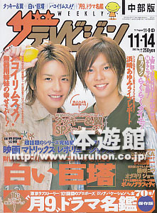 ザ・テレビジョン中部版2003年11月08日-11月14日号タッキー&翼(表紙/3P)、カントリー娘。に紺野と藤本(モーニング娘。)、SAYAKA、王貞治、草彅剛、浜崎あゆみ、唐沢寿明、江口洋介、飯島直子、深田恭子、岡田准一、ポルノグラフィ
