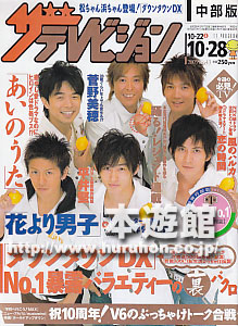 ザ・テレビジョン中部版2005年10月22日-10月28日号V6(表紙/4P)、亀梨和也、山下智也、光浦靖子、大久保佳代子、伊東美咲、玉山鉄二、速水もこみち、HIRO、菅野美穂(5P)、ダウンタウン(3P)、平井堅、舘ひろし、柴田恭兵