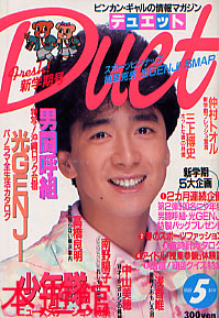 デュエット1988年05月号錦織一清(表紙)、仲村トオル、三上博史、男闘呼組、光GENJI、浅香唯、中山美穂、南野陽子、高橋良明、少年隊、工藤静香、柴田恭平、近藤真彦、藤井尚之、森川由加里、松村雄基、渡辺美奈代、清水宏次朗、うしろ髪ひかれ隊
