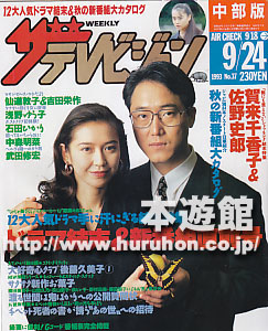 ザ・テレビジョン中部版1993年09月18日-09月24日号佐野史郎&賀来千賀子(表紙)、中井貴一、観月ありさ、陣内孝則、緒形拳、裕木奈江、小田和正、後藤久美子、モノクロ(後藤久美子、清水貴博、浅野ゆう子、宅麻伸、有森也実、風間杜夫、石田ひ