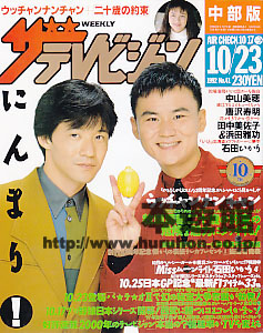 ザ・テレビジョン中部版1992年10月17日-10月23日号ウッチャンナンチャン(表紙)、牧瀬里穂、稲垣吾郎、モノクロ(的場浩司、中山美穂、浜田雅功、田中美佐子、唐沢寿明、石田ひかり、一色紗英、泉谷しげる、篠ひろ子、ビートたけし、山口智子、