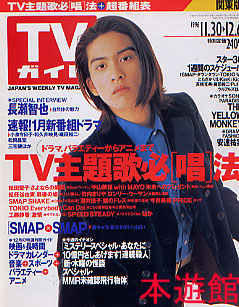 テレビガイド1996年11月30日-12月06日号長瀬智也(表紙)、松田聖子、松任谷由実、スマップ、TOKIO、工藤静香、中山美穂、竹内まりや、酒井法子、今井美樹、イエローモンキーズ、安達祐実、馬渕英里何、小泉今日子、香取慎吾