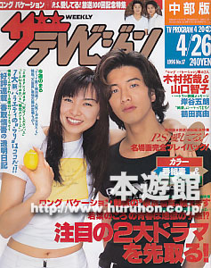 ザ・テレビジョン中部版1996年04月20日-04月26日号木村拓哉&山口智子(表紙/5P)、武田鉄矢、KINKI KIDS、香取慎吾、岸谷五朗、シャ乱Q、モノクロ(浜田雅功、香取慎吾、堂本光一、岸谷五朗、常盤貴子、河相我聞、中居正広、陣内