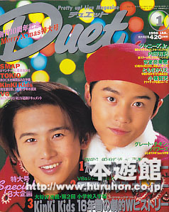 デュエット1996年01月号KINKI KIDS(表紙)、SMAP、KINKI KIDS、内田有紀、V6、今井翼、滝沢秀明、ともさかりえ、TOKIO)、CHAGE&ASKA、藤井フミヤ、LINDBERG、福山雅治、坂井真紀、中江太、佐藤敦啓