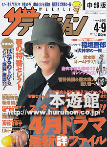 ザ・テレビジョン中部版2004年04月03日-04月09日号稲垣吾郎(表紙/2P)、TOKIO、阿部寛、ドリフターズ、妻夫木聡、柴咲コウ、堂本剛、藤木直人、菅野美穂、長谷川京子、反町隆史、安倍なつみ、篠原涼子、小林聡美、財前直見、東山紀之、